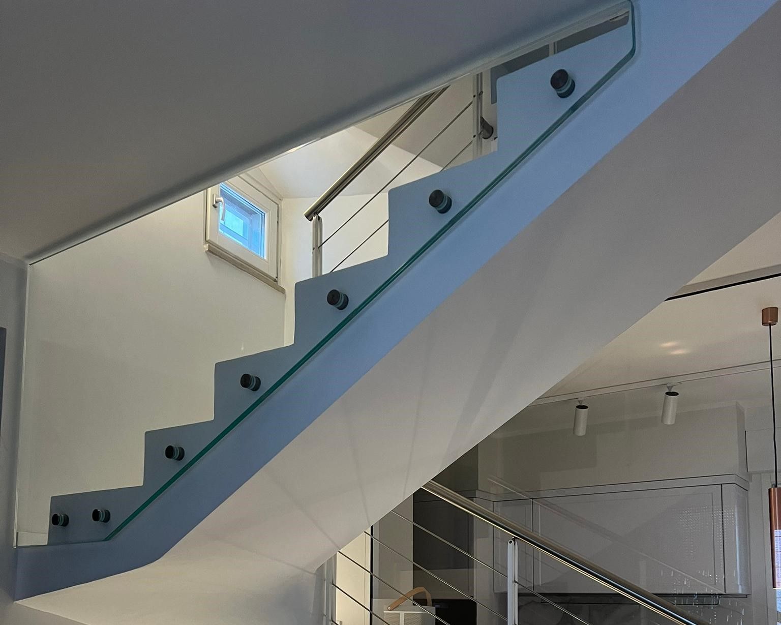 - Progettazione ed installazione di ringhiere per scala in muratura di diverse tipologie, dal moderno al classico contemporaneo, in acciaio verniciato, in acciaio inox o in vetro.